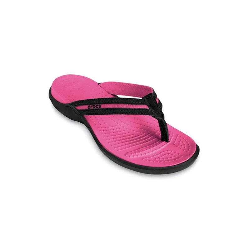 Une jolie paire de tongs dessinée pour les femmes. Les coloris vous séduiront, Crocs joue habilement avec 2 couleurs; le confort est irréprochable. Le talon est légèrement surélevé pour plus de confort. Les picots situés sur la semelle intérieure vous masseront les pieds toute la journée. Crocs prouve qu’il est possible d’allier le confort et le style !