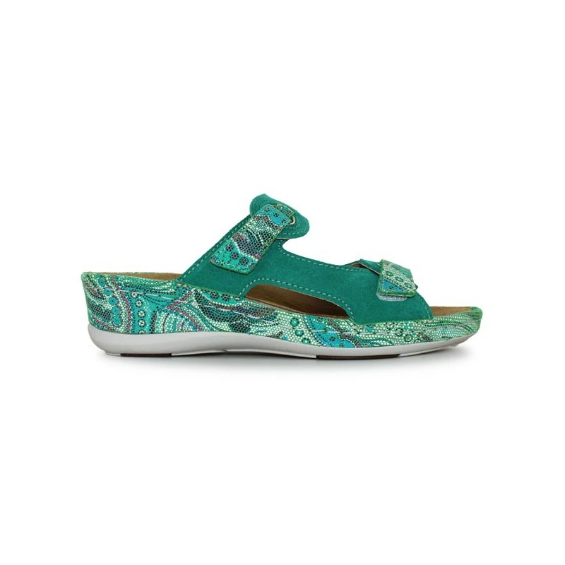 IdĂ©ales pour les pieds larges, les mules velcro pour femme BELINDA 09711 de la marque VAROMED VITAL vous offriront un très bon confort de marche. ProposĂ©es en croĂ»te de cuir, elles disposent d’une semelle intĂ©rieure matelassĂ©e, anatomique et amovible, avec circulation d’air. Tout est pensĂ© pour vous offrit un confort optimal.