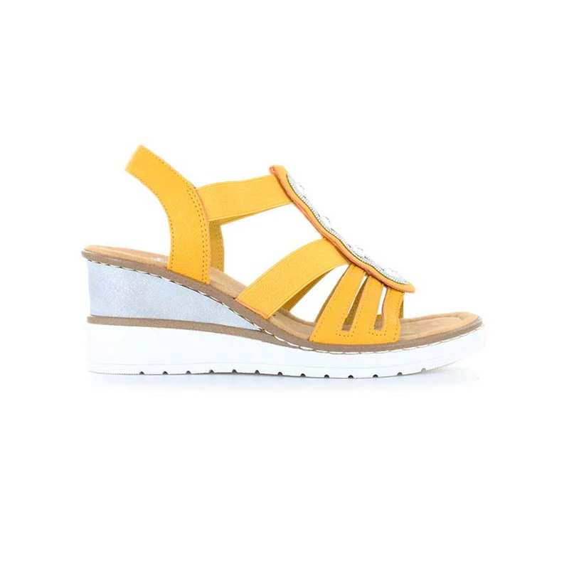 Féminines, colorées et ultras confortables, vous ne quitterez plus vos sandales à brides élastiquées CADIZ V3572 de la marque RIEKER ! Proposées avec des élastiques sur les cotés, elles se chaussent très facilement et assurent le bon maintien de vos pieds. Elles sont proposées avec une semelle intérieure matelassée et un talon compensé bien stable et confortable.